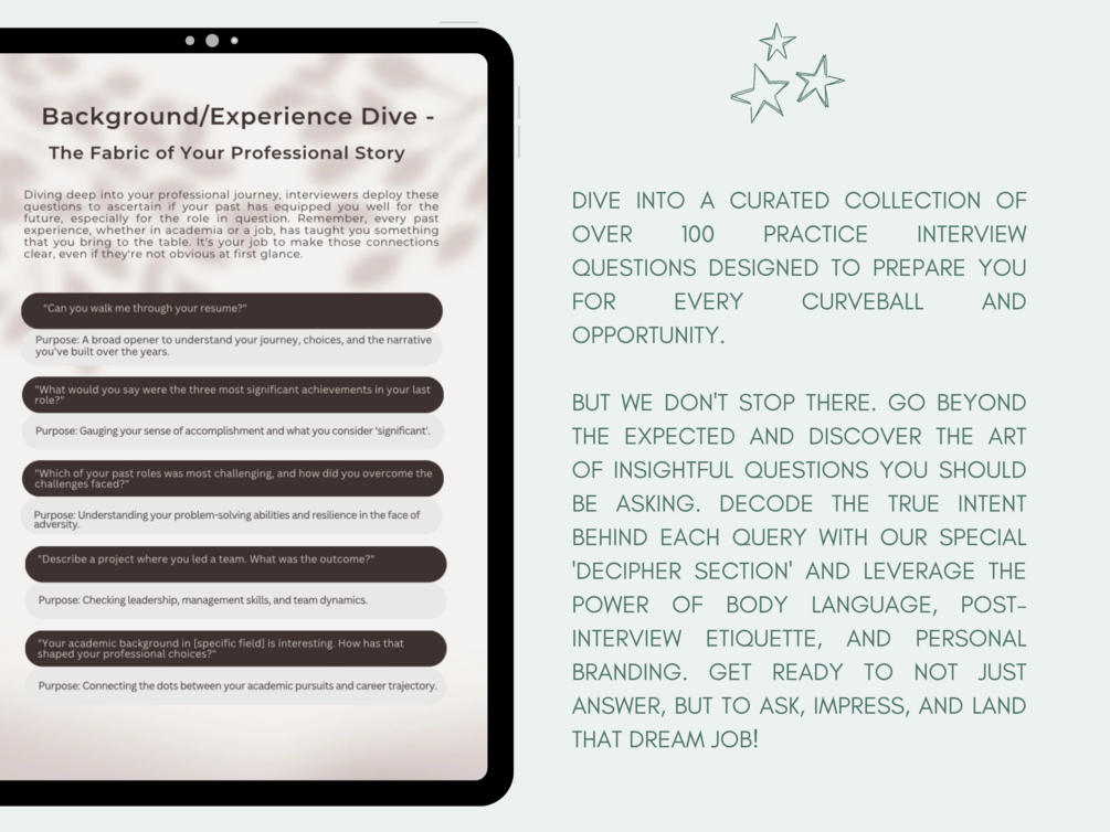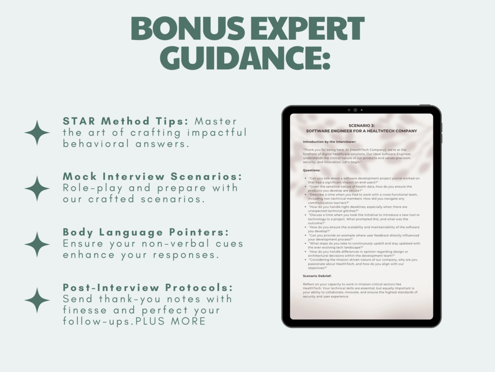 - Bonus Expert Guidance: Master the STAR method, perfect your body language, and navigate tricky moments.