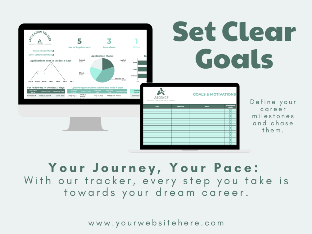 Goals & Motivations Log: Set and monitor your job search objectives, keeping your motivation levels high.